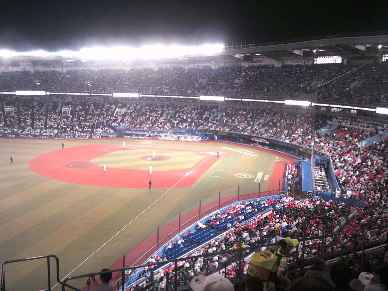 じとじとの雨が降る中、しごとを終えて海浜幕張までがんばって行きました。乗り換えの駅がどこも乗り換えたいへんなんです。また、降りてから球場までもたいへんなんです。がんばって着いた時は、まだマリンのブライアン・サモンズがノーヒットノーラン中。こんな日にぐだぐだになりながら来たので、その御褒美にノーノ―ゲームに立ち会えるのか・・・と思ったんですが、八回にカープ上本の左中間二塁打で終わり。