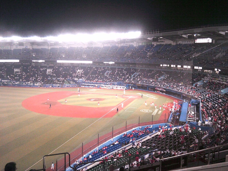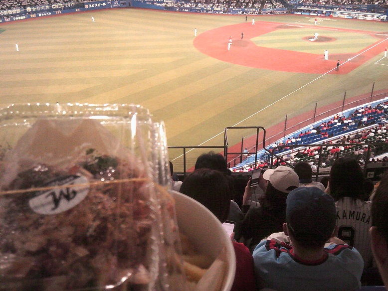 周辺屋台以外持ち込み禁止なのに七時四十五分だともうほとんど売り切れなので今日もたこ焼きだ。球場内でポテト買ったが高かった。