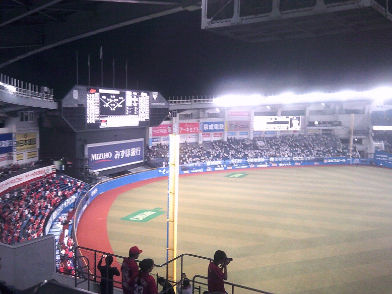 どちらも熱心なファンですがさすがにこの時間になると外野席もスカスカに。