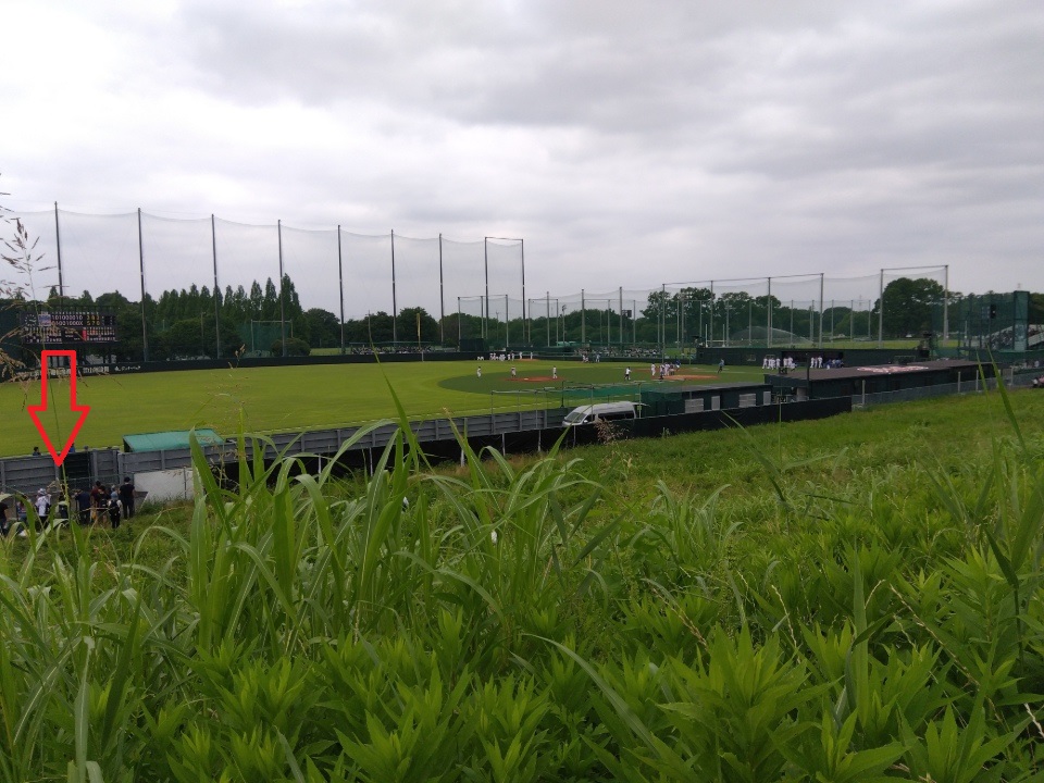 二週間ぶりに来てみたら、あっという間に草が成長しています。打席は村上。