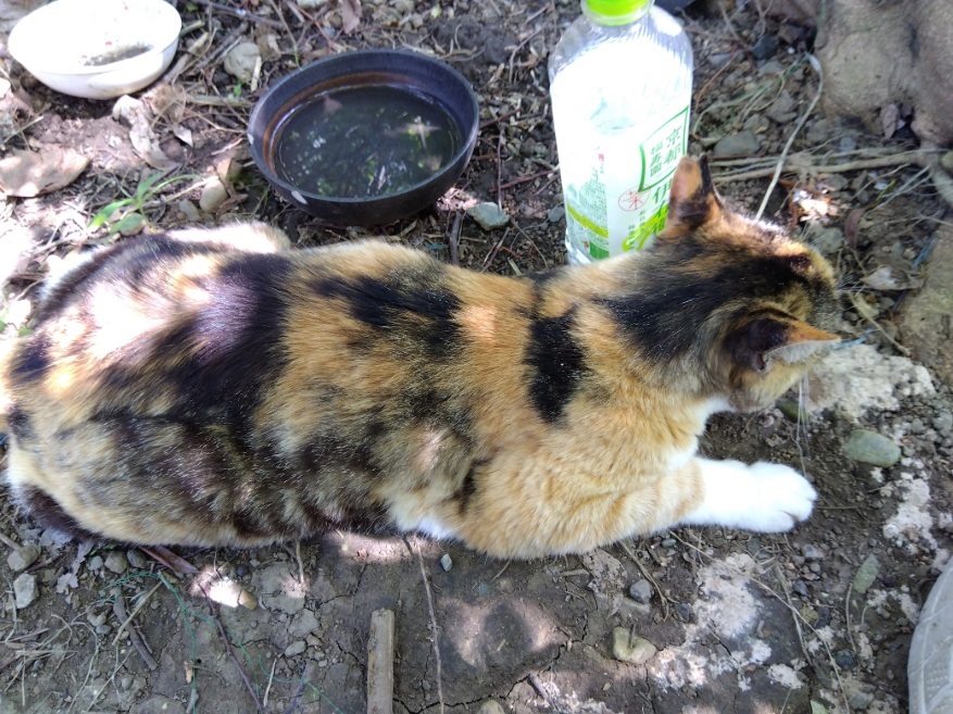 もう一匹のは、わたしを見つけると「なんでこいつ生きているんにゃ」みたいな顔をして逃げていきました。
