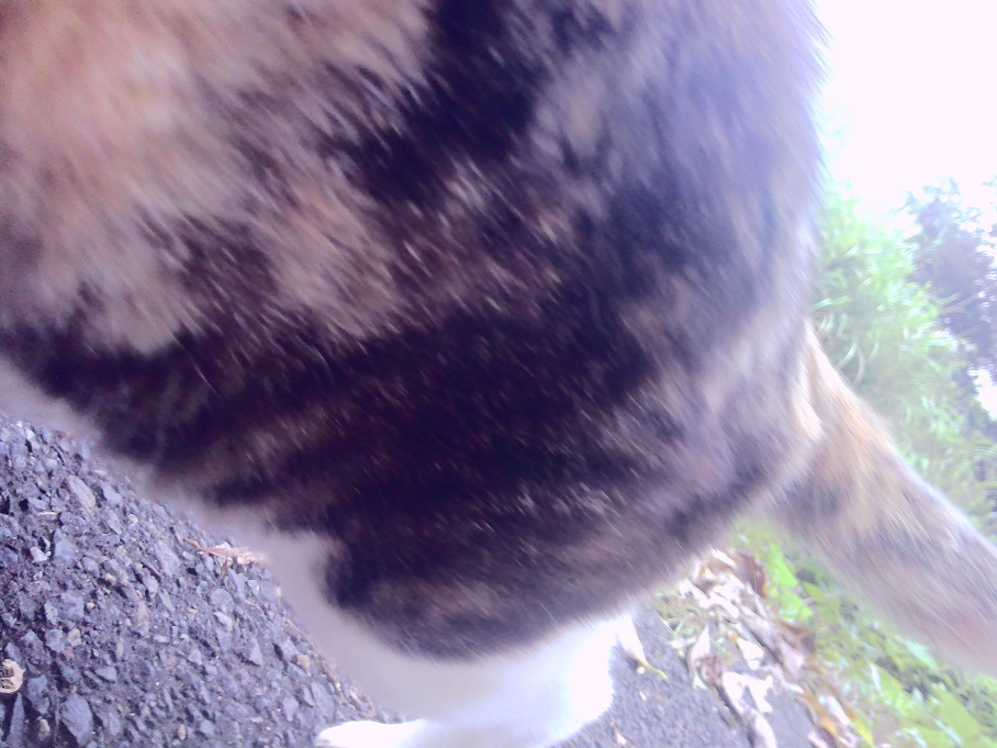 いつも「むすー」としているのですが、おしりをたたくと、「にゃーん」(高音)「ぼえー」(中音)「うーー」(低音)で鳴きます。それぞれにまたバリエーションもあっておもしろい。