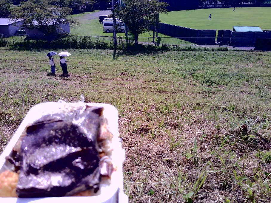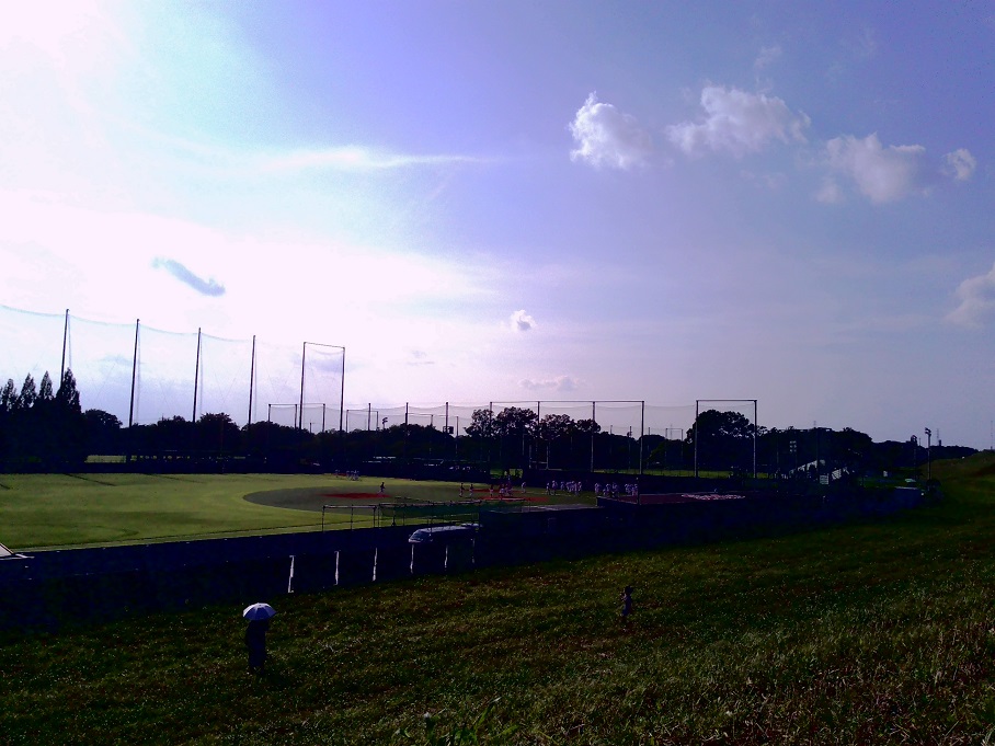 今日は日が射して、暑かった。用意していった氷もお茶も足りなくなりそうで、延長戦になったらどうしようかと思いましたが、16時前に終了しました。スワロ青堀、初回は三者凡退だったんですが、なにしろ暑いので二回に一点、三回は吉納の4号3ランなどで5失点、イーグルの王は初回初球を山野辺に3ベース、一点は仕方ないのですがそのあと四球・死球で失点をかさねる。二回もピンチ、三回もずるずる失点し、三回終わってもう一時間半ぐらいやってたんですが、そのあともどちらも走者を出しまくって、結局楽天15安打(5四死球・2被失策)、スワロ11安打(7四死球・1被失策)でくたくたに。この気温で「すぱっ」とやれというのもムリでしょう。