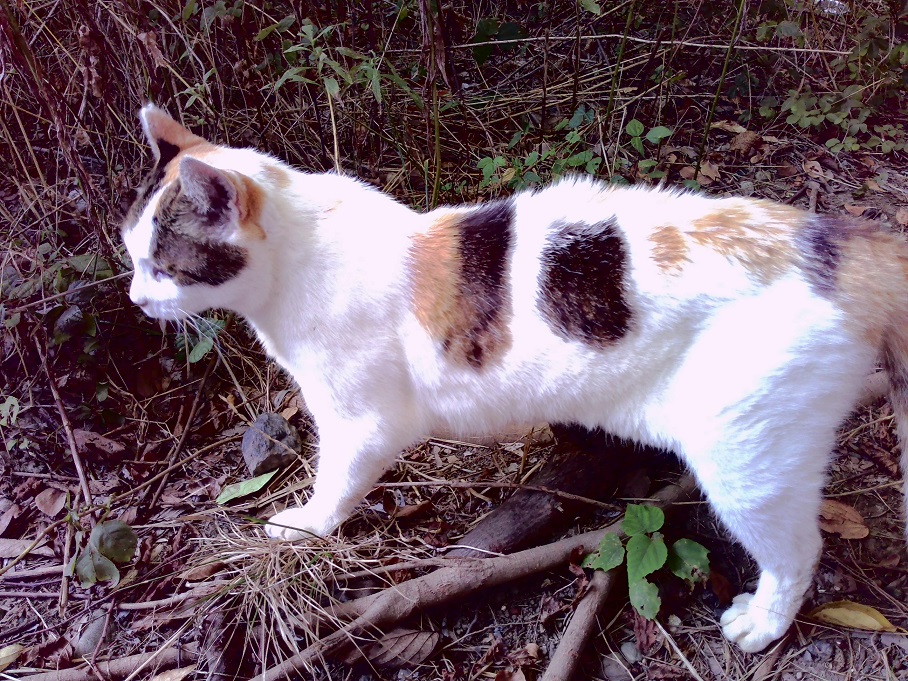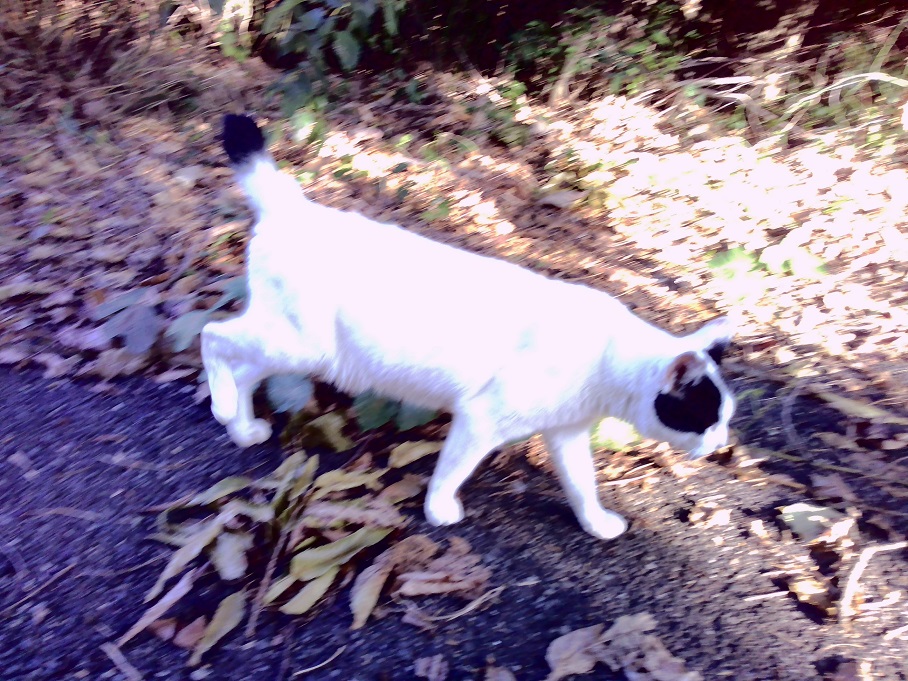 行きに見つからなかった白ミケに発見され、しりたたき。散歩のイヌが来たので逃げてしまい、それを潮にひきあげます。