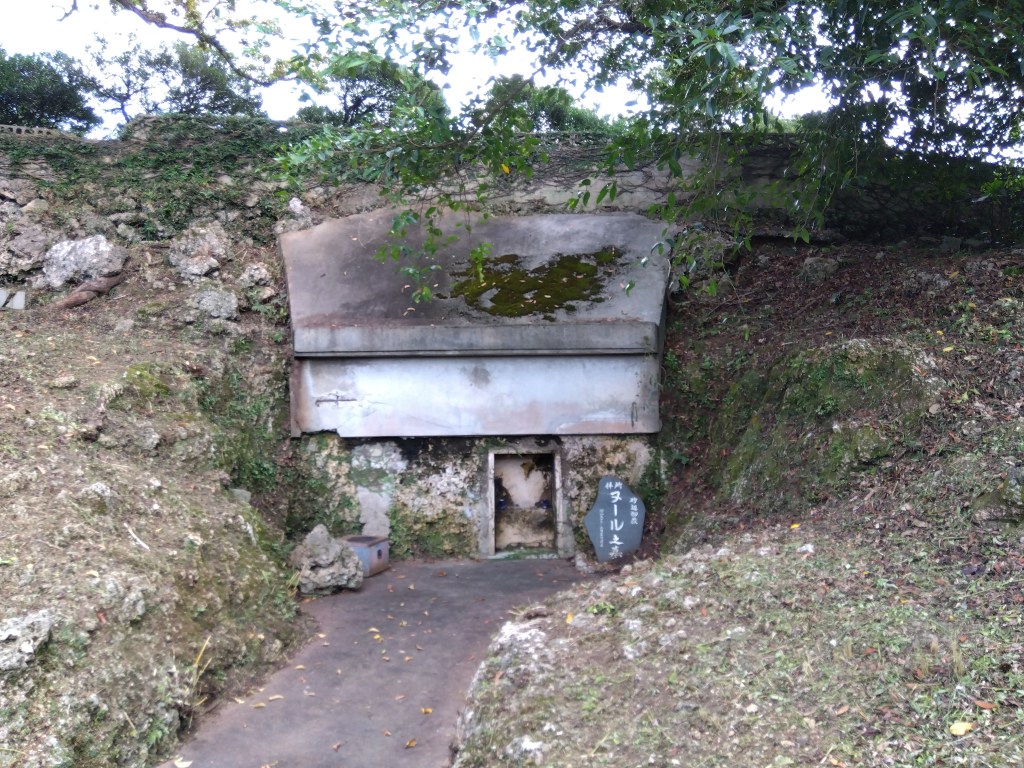 〇有名なくまやーがま ・・・ 近世以前から死者を葬る霊地とされていたガマ(洞穴)ですが、米軍上陸時に村人が隠れ、ここの村人は集団自決しなかったので、生き残りました。その後、発掘したところ、「先史時代」の遺骨がたくさん出てきて、按司時代(十二世紀ぐらい以降)以前から遺跡であったことが判明。