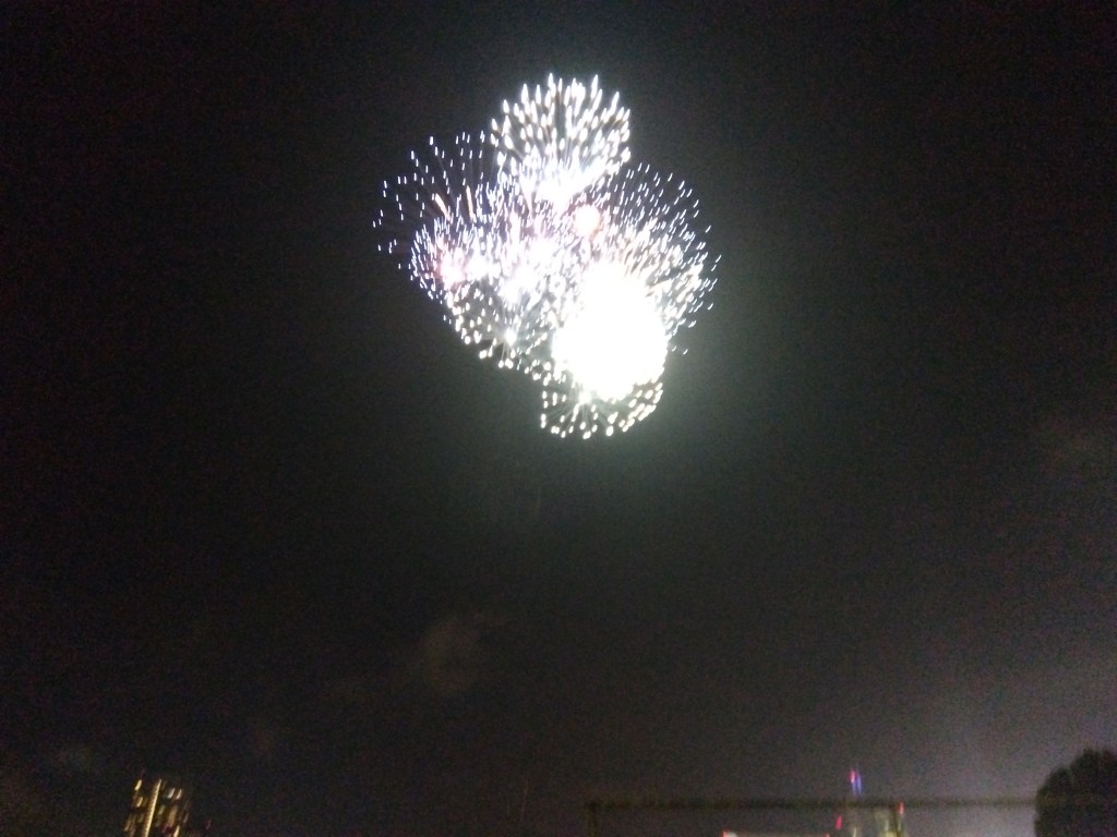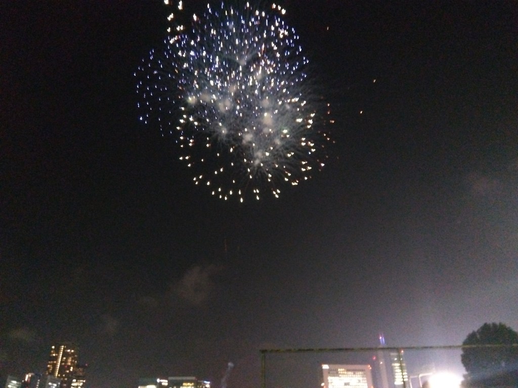 五回裏はまだ神宮軟式野球場(五回裏花火の打ち上げ場所)のあたりだったので、花火は球場外で見ました。