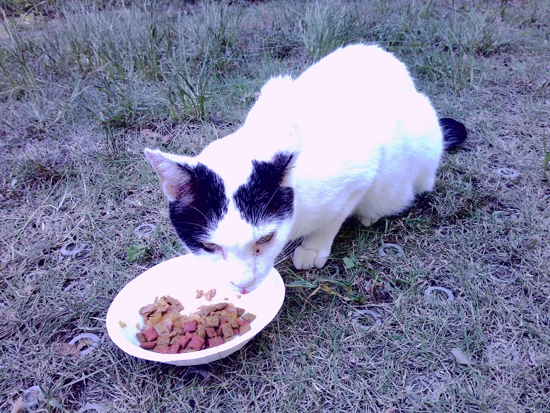 まず到着してネコを観に行く。発見できたのはこのハチだけだ。怒ったような顔をしていますが、しているだけで、このあと頭ぐりぐりやのどぐりぐりなどをします。
