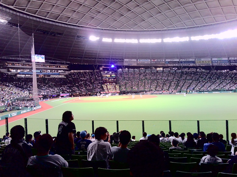 七回の表ぐらいですよ。マリンサポがまだ元気だ。