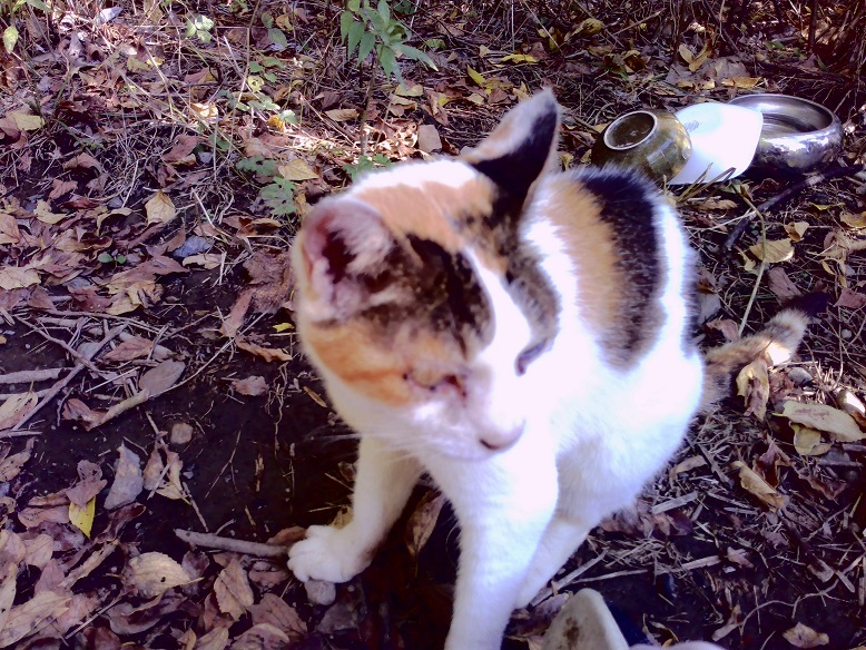 このネコは足が悪いんでほとんど動かないが、食い物をみつけると一生懸命食べに来ます。しりたたきは要らない模様。顔を撮った写真もあるのですが、目の周りが脹れて赤くてみなさん嫌がると思うのでアップしないでおきます。なんで嫌がるんですか。
