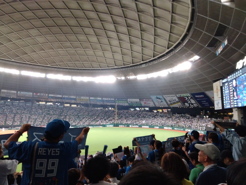 西武池袋線が安全確認だとかなんとかで十五分ぐらい遅れたのでいつもどおり八時到着。この時点で4ー0…やっぱり勢いのないチームはダメだ、これからは夏の暑さにドーム球場を持つ上級チームしか勝てないんだなあ、と思っていたら、七回二死一塁から守備固めの山縣がお手玉して二死一二塁、滝沢2点ツーベース、さらに渡部四球で北山から上原に代わったらネビンがすごい3ランで逆転。野球はこわいですね。それにしても滝沢のあたりで一塁からのランナーをホームで一度アウトにした原さん、あんないい場所にちゃんと入ってるので「さすがはNPB審判」と思わせておいて、なんで判定間違うんやろ。