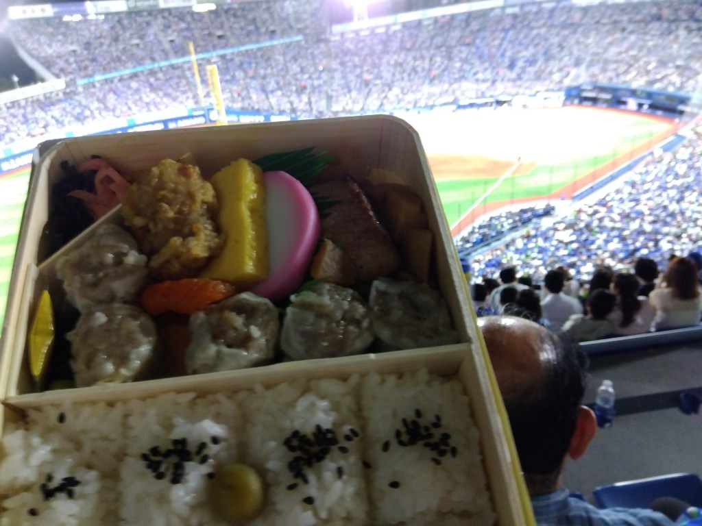 到着は六回裏。ここも最後だと思うのでシウマイ弁当食べる。前の人の頭撮っていると思われて怒られると嫌でしたが、勇気を持って撮影。