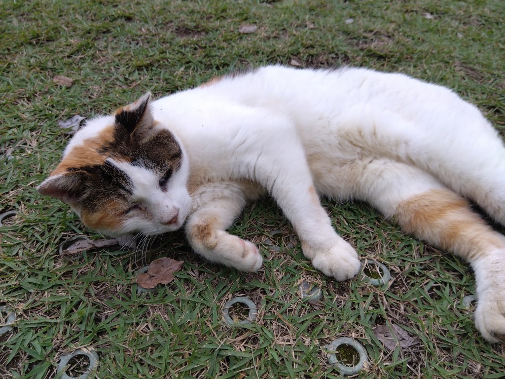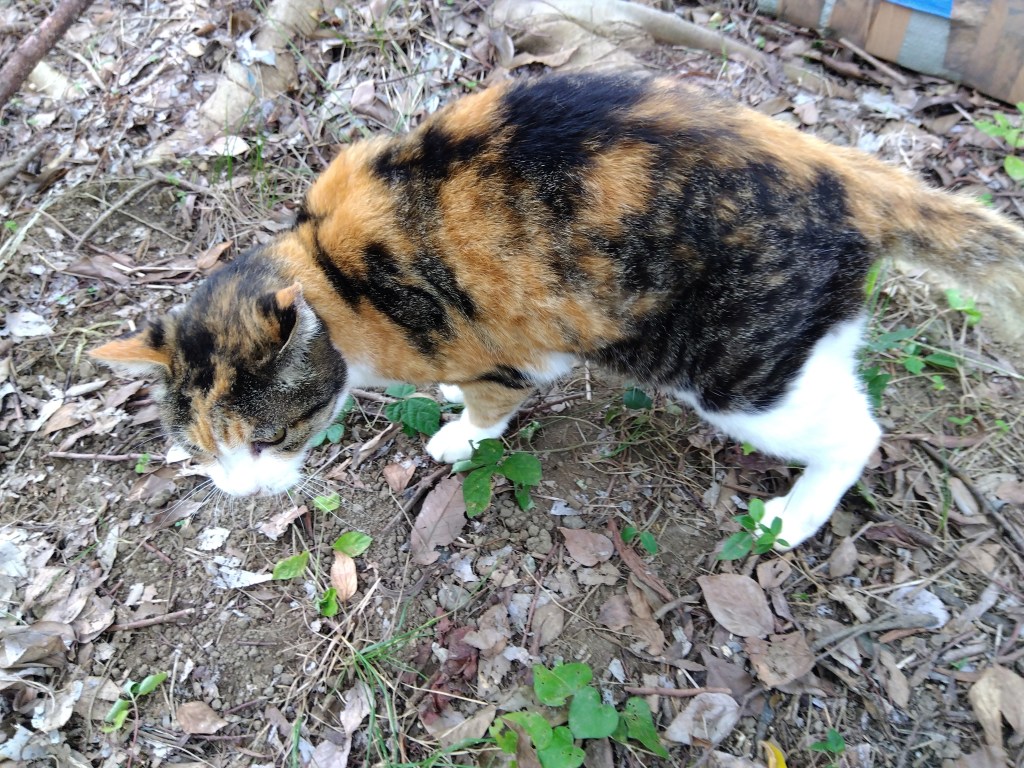 最後に駐車場出口付近の足折れネコだ。一段と弱り竹林に入り込む。目の前までメシを置きに行くのが大変です。写真小さくしたいんですが方法がわからないんです。