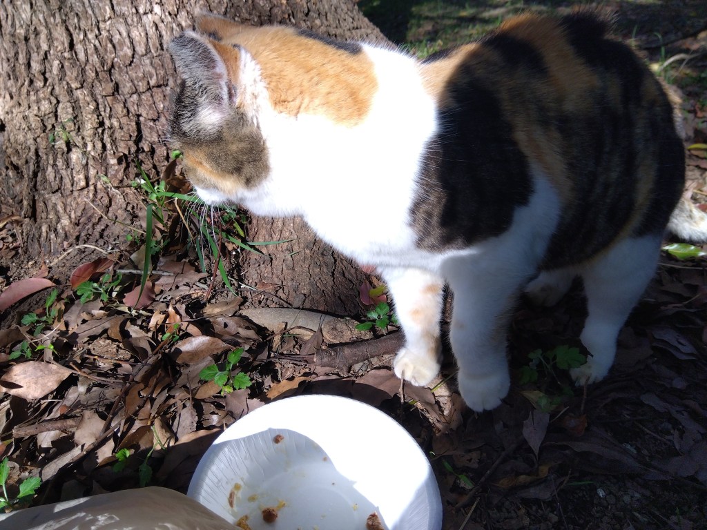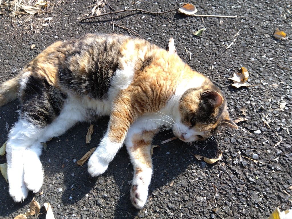 戸田彩湖公園の橋を渡ったあたりに出没する手前ミケだ。最近完全に「しりたたきのおっちゃん」と認識されてしまい、向こうから寄ってくるようになった。