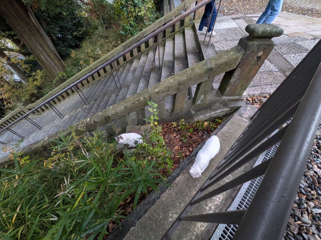 こいつに手持ちのクリッピーを与えようとしてたら、五人ぐらい子供が来たので「こんなことしてはいけないんだよ」と言いながらエサを食わせました。すると、おかあさんたちも来たのですごい緊張感に。条例、警察、通報・・・などの言葉が頭を駆け巡る。おかあさんの一人が「触らないで!」と子どもに言ってました。もしかしたら私に言ったのかも知れない。ネコはびびってましたが、エサだけは食ってました。