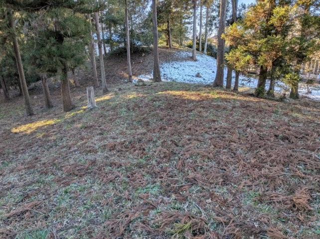 二号墳です。こちらは円墳だということですが、前方後円墳ではないだろうか。