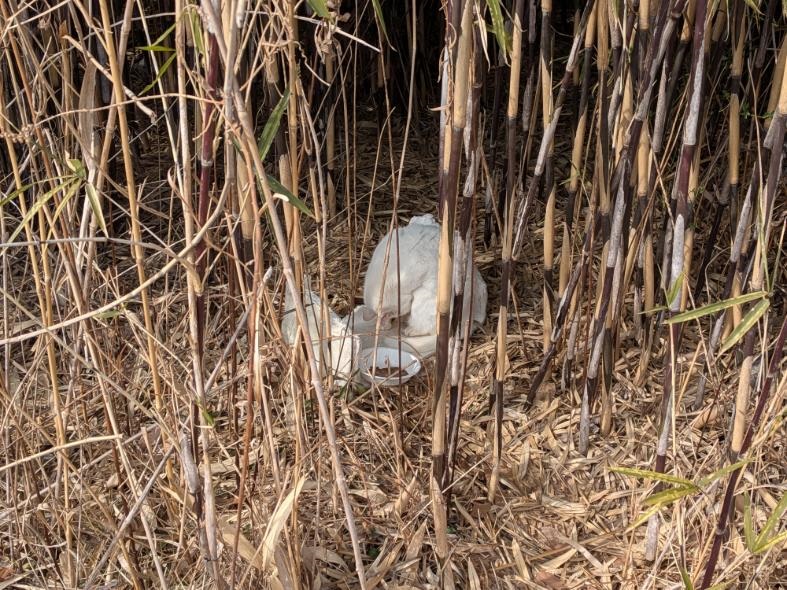 白ミケのいたあたりです。無主ノラ捕獲されてもしようがないんですが、せっかくともだちだったので、少しは悲しいですね。そうか、枯木のように冷酷なわしにもまだこんな心があったんじゃなあ。