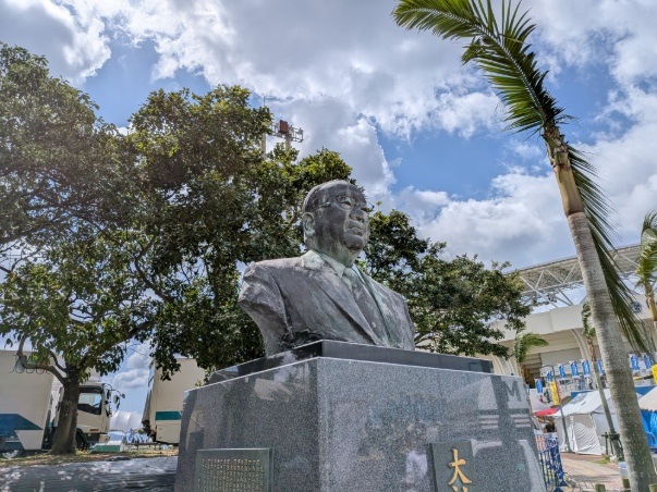 大社(おおこそ)オーナーの銅像だ。これがあるかぎり、ファイターズは名護から離れられないであろう。ここに来るまではファイターズは鳴門でキャンプしてたんですね。