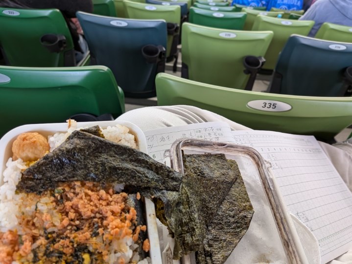 今年初めてなので、西武電車の野球ファンへの冷酷さを忘れてました。急行が来ない、乗り替えが悪い、など、なかなか西武球場前に着きませんが、電鉄の方は「いやなら歩いて行きなはれ」みたいな感じで怪しからん。