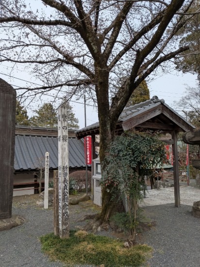 新田義貞誓いの桜はまだまだです。何を誓ったかはこの掲示棒だけではわかりませんが。