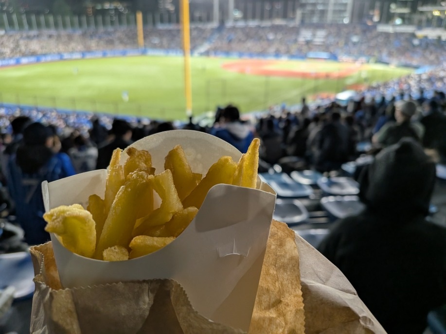 信濃町の駅前のミニ〇〇ップで買ってくるポテトフライです。柔らかくてしょっぱいのでお気に入りなのですが、去年と同一物とは思えないぐらい量が減りました。やっぱりこの国はもうだめねこの国なんですね・・・。若いやつがしっかりせんからじゃ・・・。