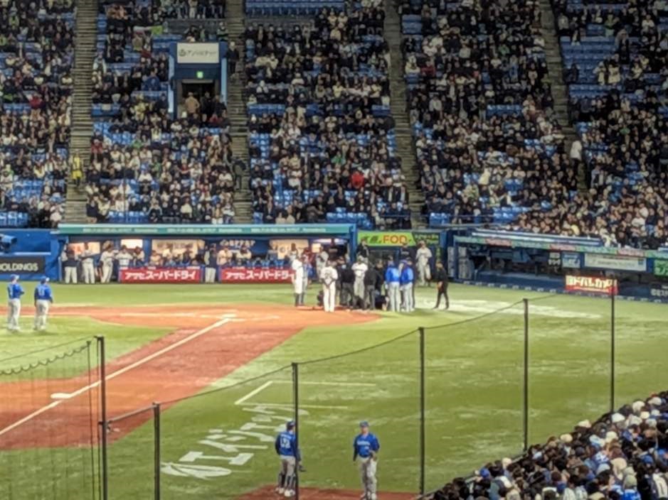 試合は淡々と進んだのですが、八回裏、オスナのファウルに反応しようとしたベイス捕手山本と主審の川上さんが交錯して、川上さんが倒れて動かなくなってしまい、担架で出ていきました。寒かったので早くしろとは思いましたが、川上くん(←まだ若いんです)は大丈夫か。