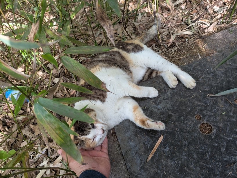 今日も来たんかにゃ、とめんどくさそうな蓋ミケだが、最初覗いたときいなかったので、どうも肝冷庵が来た、と知ると、この公衆便所の蓋に移動するようです。蓋ミケではなくこちらが「蓋肝冷庵」にされているのかも。