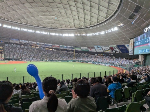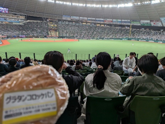 六回裏二死につきました。いつも?のように、西所沢で連絡が悪いので10分ぐらい待たされます。混雑もひどいし、野球見に行く環境ではないのでは・・・といつもグチを言ってますが、池袋の駅から70分ぐらいかかるのはやはりたいへんですよ。
